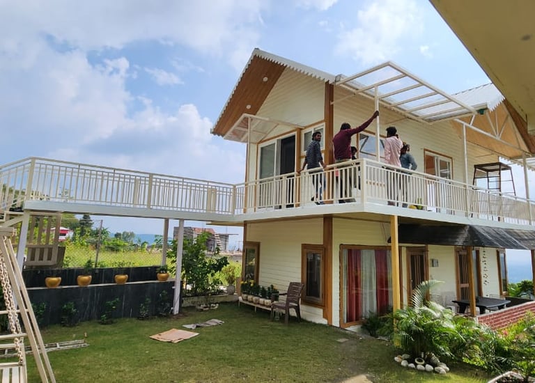 Prefabricated houses are built off-site and assembled on location, offering quick construction and customization options.